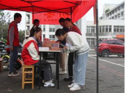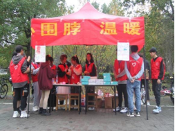 在秀山校区第六、九食堂广场启动“爱心围脖”暖冬计划,组织学生现场领毛线织围脖,“亲手”将温暖和关心传递至远方,帮助西部高寒地区儿童抵御严寒天气。