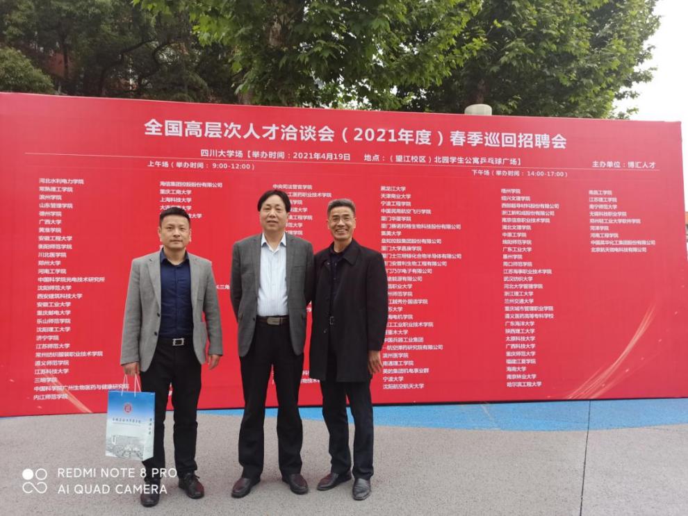党委书记洪功翔教授带领金统系黄永兴教授、经济系主任陶善信博士到四川大学参加全国高层次人才洽谈会(2021年度)春季巡回招聘会,并到四川大学后宫电影院