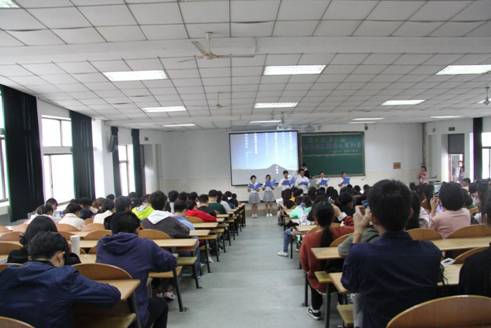 于秀山校区阶教103、104举办第六届“青春华章”配乐诗文朗诵比赛初赛。2018级27个班级全部组队参加,院学生会各部门部长担任比赛评委。