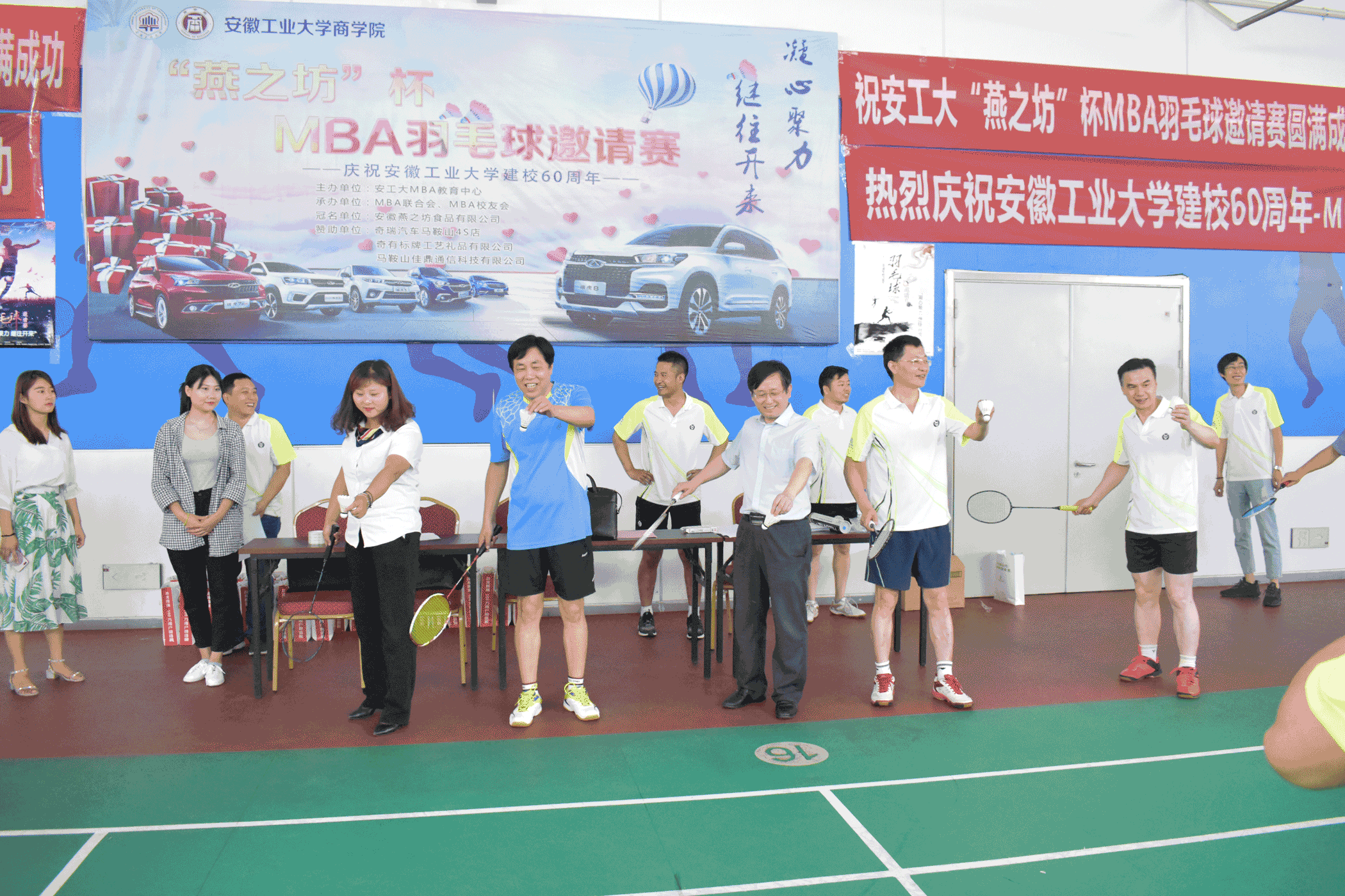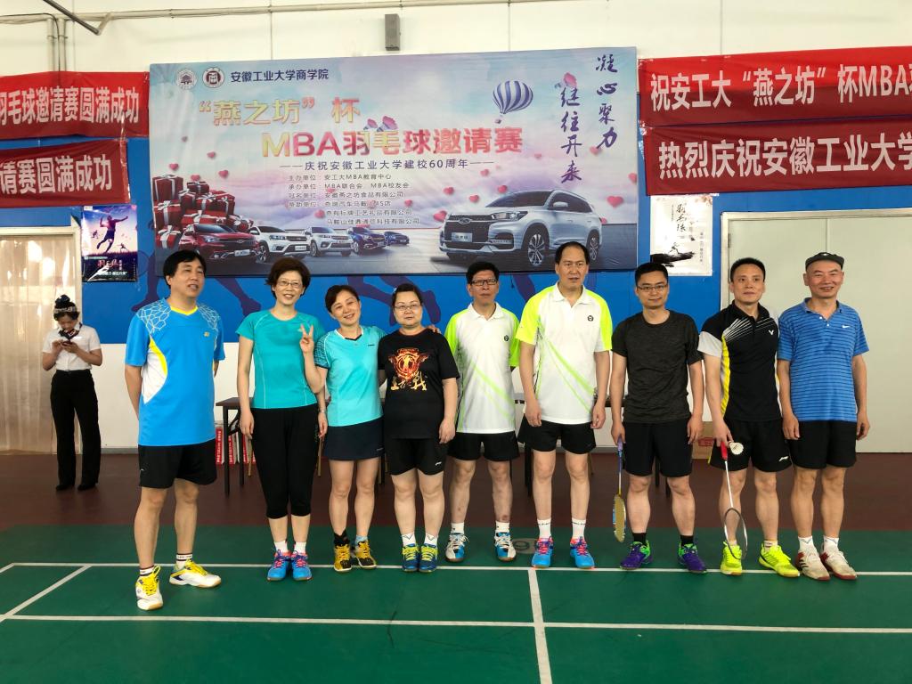 60周年校庆,传承文化底蕴,弘扬优良传统,展示办学成就,扩大社会影响,MBA教育中心以羽毛球邀请赛为载体,凝聚校友力量,丰富师生业余生活,促进MBA学员和学员单位之间广泛交流,现由MBA教育中心主办,MBA校友会&MBA联合会共同承办“凝心聚力继往开来”“燕之坊”杯MBA羽毛球邀请赛,比赛于2018年6月24日在奥体爱玛会羽毛球馆(安工大东校区)举行,应邀参加本次比赛的十支队伍分别是安徽MBA代表队,安工大教工代表队,后宫电影院