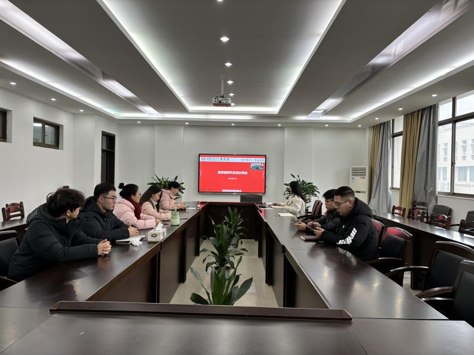 在秀山校区汇文楼C402召开研究生班长期末例会,会议采用线上与线下相结合的方式举办。旨在做好研究生学科评估工作、明确寒假安排,确保同学们度过一个安全且充实的假期。辅导员王琴老师、郝乐老师及各年级研究生班长参加了此次会议。会议由辅导员王琴主持。