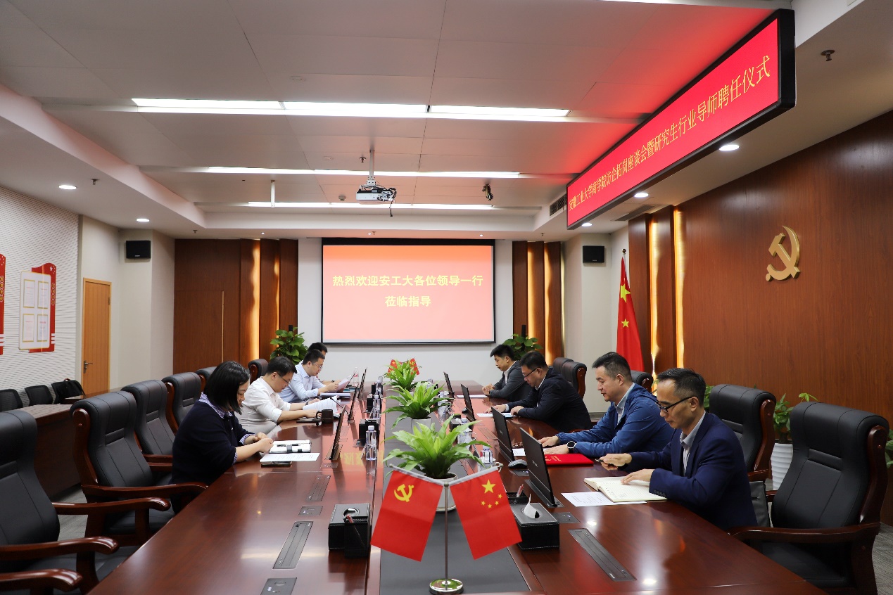 党委书记杜飞、副院长李伟军、校宣传部副部长黄敏、MAS教育中心主任崔立志赴中国移动马鞍山分公司,与分公司党委书记、总经理李传维、副总经理陈晓波、市区营销中心总经理杭园园、市区营销中心副总经理张琦、市区营销中心高级客户经理陈珺共同出席了应用统计专业硕士校外行业导师聘任仪式。