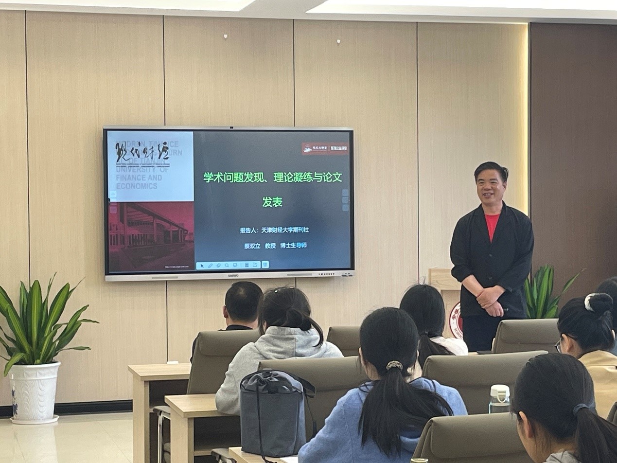 “荟灵经管论坛”,并作题为“学术问题发现、理论凝练与论文发表”的学术报告。报告由副院长周世军主持。