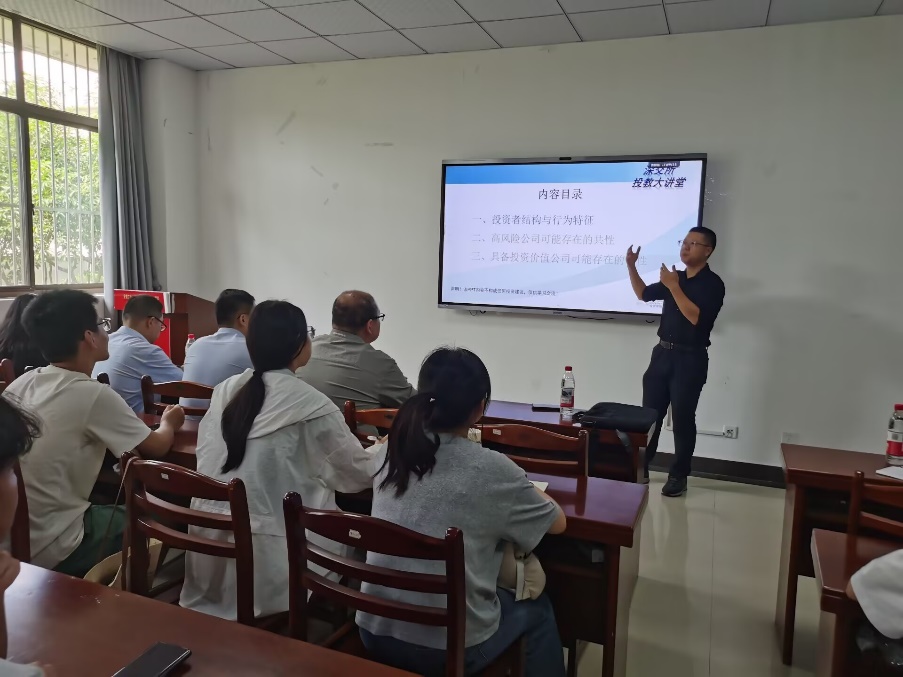 陈俊峰就A股市场投资者结构与行为特征、高风险公司可能存在的共性及具备投资价值公司可能存在的共性三个方面进行讲解,并结合A股上市的农林牧渔、医药生物、零售消费、建筑工程等行业企业的典型案例展开细致分析,同时分享了在深交所及中国证监会上市部工作时,负责上市公司监管及并购重组审核方面的经验。