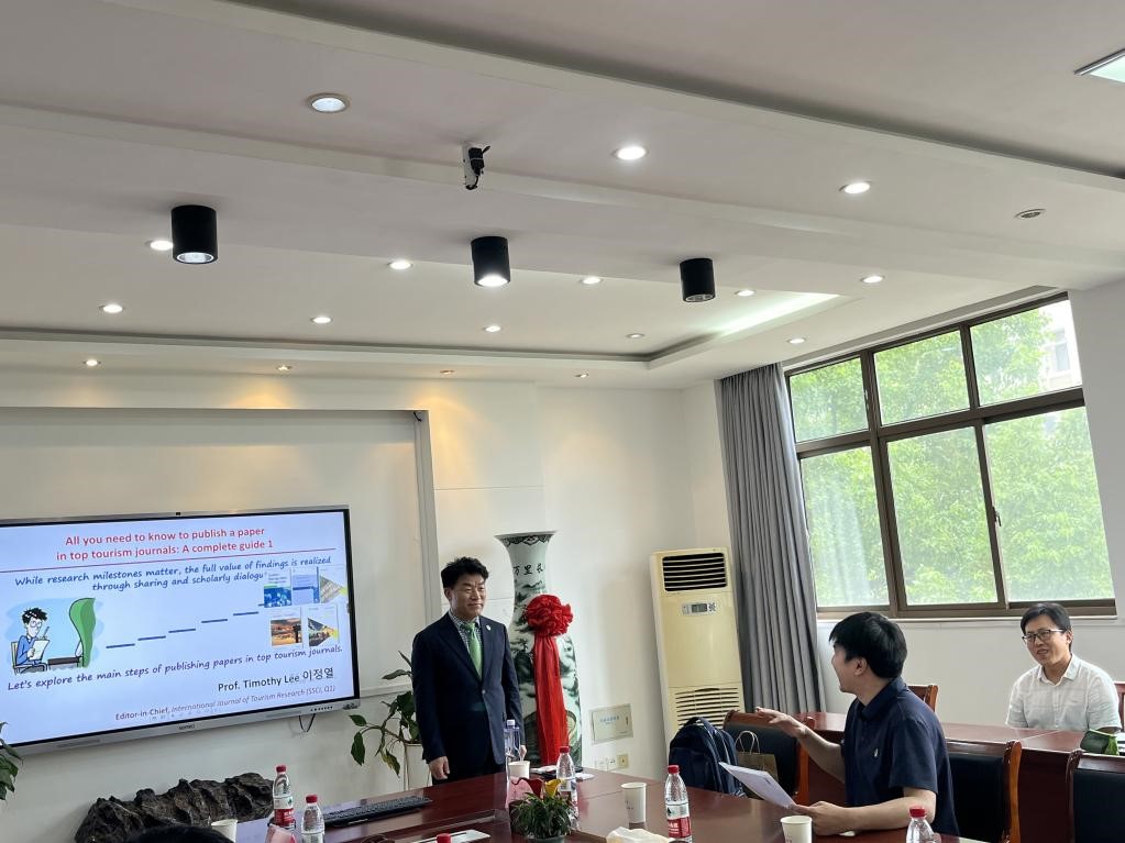 于7月12日下午在汇文楼B304会议室举办了题为《通往旅游顶刊之路:论文发表必知事项》的学术报告。报告由澳门科技大学酒店与旅游管理学院教授、博士生导师、副院长Timothy Lee主讲,活动特邀了江苏理工学院夏仿禹博士与扬州大学胡佳博士出席,后宫电影院