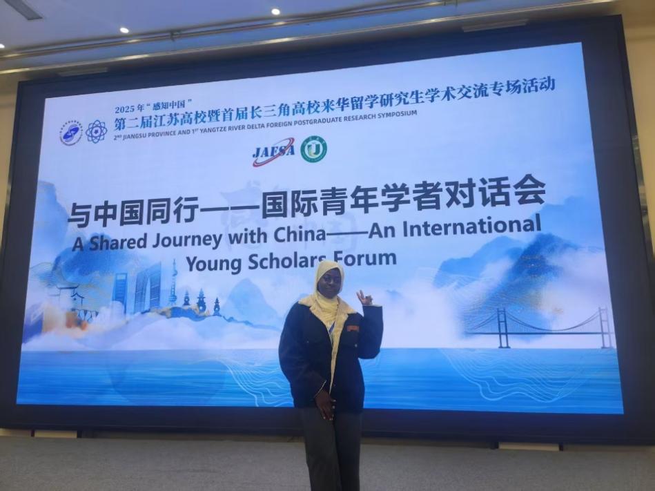 留学生教育中心主任朱婷婷带领国际经济与贸易专业留学生研究生Alhassan Khadijah一行参会,凭借扎实的学术功底和精彩的成果展示,Alhassan Khadijah最终斩获学术论文“优秀奖”。