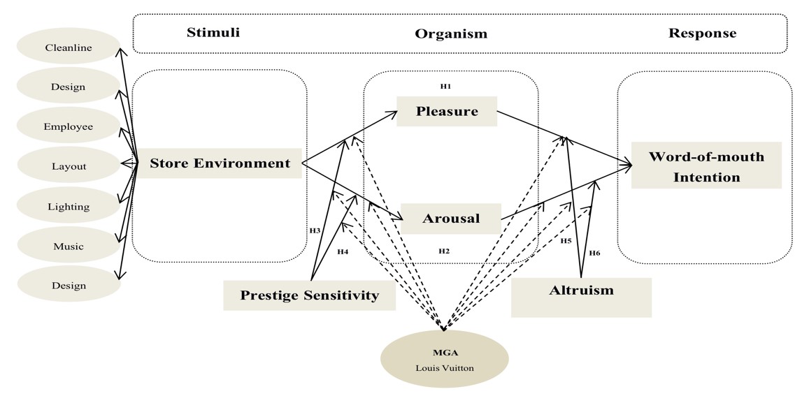 近年来,随着生活水平的不断提高,中国消费者在奢侈品零售市场的消费支出显著增长,同时也加剧了奢侈品行业的竞争。在这一背景下,奢侈品行业需要有效利用市场营销策略,以强化自身的竞争优势。尽管口碑传播是最古老的传播方式,却被视为未来传播的重要方向——因为在未来,拥有会“讲故事”的消费者将成为品牌最有力的竞争优势。基于此,本研究以刺激-有机体-反应模型(Stimulus–Organism–Response Model)为理论框架,探讨奢侈品商店环境对声望敏感性、消费者情绪以及口碑传播意向的影响机制,并对古驰(Gucci)与路易威登(Louis Vuitton)两类奢侈品店的消费者进行了对比研究。