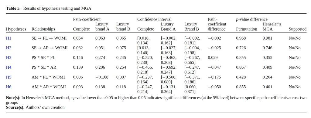 为验证研究模型,本研究通过问卷调查收集了135名古驰消费者和130名路易威登消费者的数据,并运用结构方程模型进行多组比较分析。研究结果表明,无论在古驰还是路易威登的消费者群体中,消费者情绪均无法在奢侈品商店环境与口碑传播之间发挥中介作用。同时,声望敏感性也未能在古驰和路易威登商店环境与消费者情绪之间起到调节作用。然而,研究中发现了一个有趣的现象:利他主义仅对路易威登的消费者情绪与口碑传播之间起到显著的调节作用。最终,通过对比两类奢侈品店,研究未发现中介效应和调节效应在这两者之间存在显著差异。