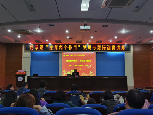 “发挥支部战斗堡垒作用和党员先锋模范作用专题培训班”在秀山校区振华图书馆第一学术报告厅开班。校党委书记刘新跃以“加强党性修养,发挥两个作用”为题,为培训班师生党员授课。活动由后宫电影院