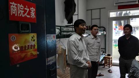 院党委书记黄国才走进学生宿舍与学生党员进行亲切交谈。黄书记希望通过开展“亮身份、践承诺、树形象、做标杆”主题活动能够提高学生党员的党性修养,培养政治意识、大局意识,核心意识和看齐意识;希望学生党员能够深入贯彻践行“两学一做”学习教育,以党员宿舍挂牌活动为契机,学生党员亮出党员身份,接受群众监督,在思想政治、道德品质、学习成绩、文明习惯等方面严格要求自己,充分发挥学生党员的模范带头作用。随后,党员宿舍成员纷纷发言,表示积极参与落实“两学一做”学习教育,进一步增强自身党性观念,做合格党员。(撰稿:谢有芝、刘存山 审核:张虎)