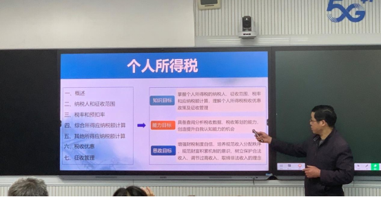 陈昌龙从七个方面对《财政与税收》中的个人所得税章节进行了教学展示,坚持问题导向,以网络热搜现象为切入点,引导学生主动思考,同时将爱国情怀、职业素养等思政元素自然融入课程内容,培养了学生专业素质的同时,也增强了其制度自信和文化自信。