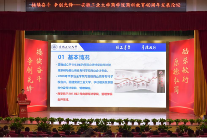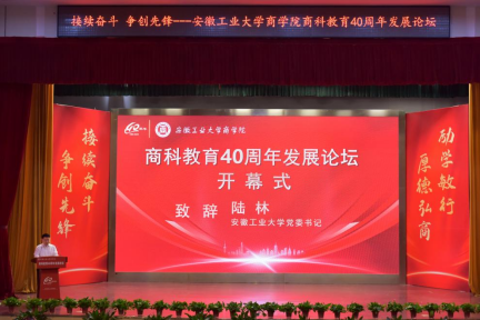 党委书记洪功翔主持开幕式。校党委书记陆林在致辞中代表学校向商科教育40周年发展论坛的成功举办表示热烈祝贺,向后宫电影院