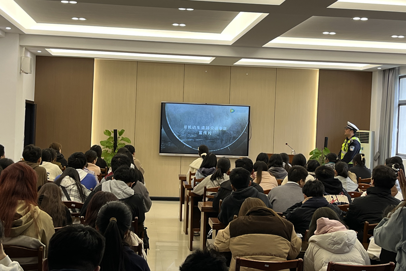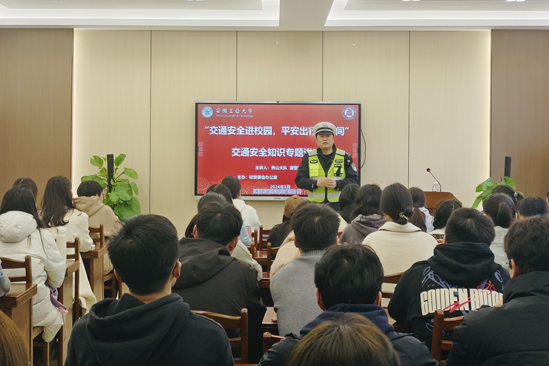 邀请马鞍山市交警支队秀山大队唐凯警官开展“交通安全进校园,平安出行记心间”交通安全知识专题讲座,各学院100余名学生代表参加此次活动。