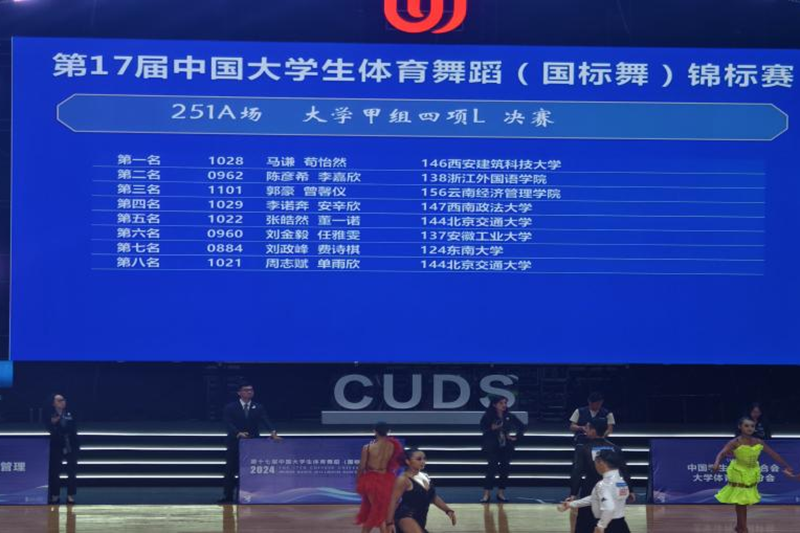 5月27日至5月31日,第十七届中国大学生体育舞蹈(国标舞)锦标赛在四川省绵阳市九洲体育馆盛大举行。大赛由中国学生体育联合会主办,中国学生体育联合会大学体育舞蹈分会、中国学生体育联合会高职院校工作委员会联合执行,绵阳市教育和体育局承办。比赛历时5天,来自全国29个省市的近150所高校代表队,超过1600名选手参与了144个竞赛项目的激烈角逐。