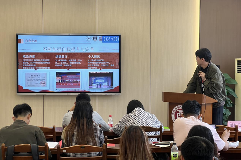 团委学生会第十一届正部述职暨第十一届和第十二届正部座谈会。院团委书记印路路、院团委副书记张舒、辅导员谢有芝、团学部分负责人和部分学生干部参加了本次会议。会议由主席团主席李天乐主持。团学各部门负责人从政治态度、道德品行、学习情况、工作成效、纪律作风等方面,对自身及所在部门过去一学年的工作情况进行了汇报,与会人员就有关工作进行了分享交流。