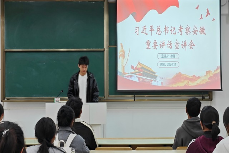 党的十八大以来,习近平总书记第三次亲临安徽考察,充分体现了对安徽人民的深情厚爱,对安徽发展的殷切关怀,让我们倍感温暖、倍受鼓舞、倍增信心。此次宣讲会紧密围绕习近平总书记考察安徽重要讲话精神展开,从认识重大意义、领会丰富内涵、推动落地生根三个方面,分别进行深刻解读和详细阐述。在会议上,徐瑞以生动鲜活的事例、通俗易懂的语言提出,要将习近平总书记考察安徽重要讲话精神同立足自身岗位实际结合起来,一体学习领会、一体理解感悟,主动服务和融入新发展格局,切实扛牢重大使命任务,为奋力谱写中国式现代化安徽篇章贡献学生力量。