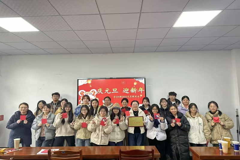 会234班于12月26日下午在汇文楼B114举办班级团建活动。辅导员赵婧老师和会234班全体学生参加了本次活动。