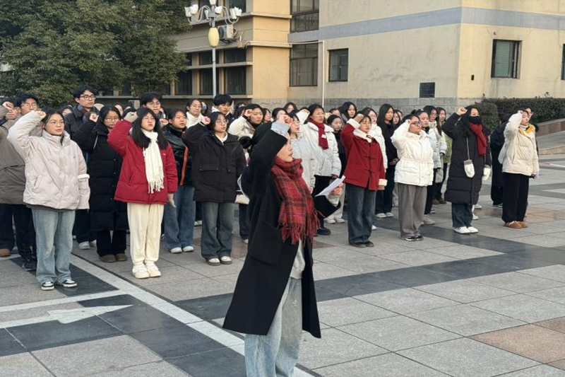 在秀山校区主教学楼广场举行“弘扬爱国志 奋进新征程”元旦主题升旗仪式,校团委和安全保卫部相关负责同志,后宫电影院