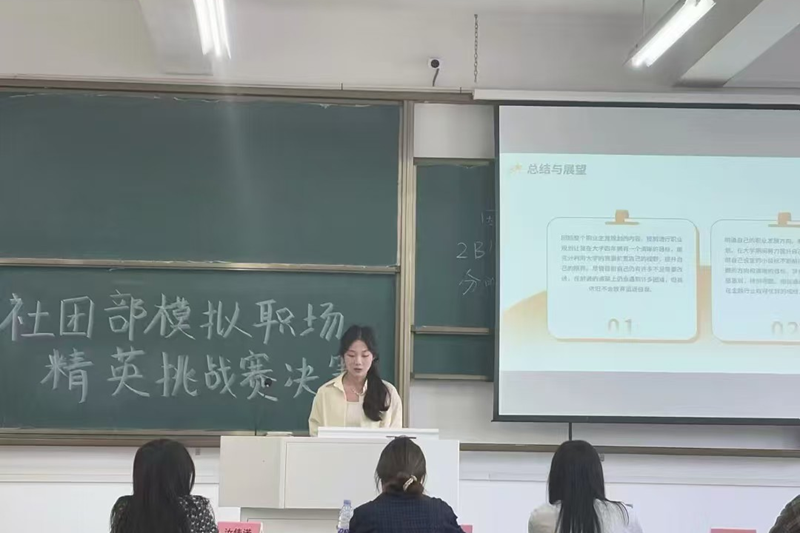 社团部主办的“职场逐梦新赛场,精英挑战绽光芒”职场精英大赛决赛在秀山校区教北110教室火热开赛。
