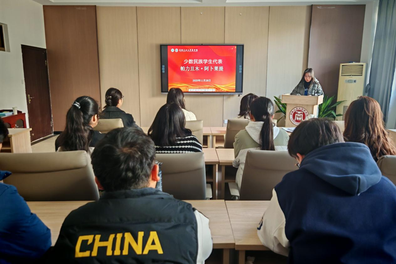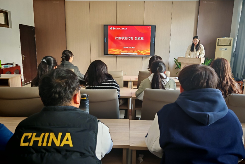活动在和谐融洽的氛围中拉开帷幕。少数民族学生代表帕力旦木·阿卜莱提和汉族学生代表吴淑雅先后作了发言。他们结合自身在校的学习与生活经历,分享了对于民族团结的理解与感悟,他们的发言真挚动人,展现了后宫电影院